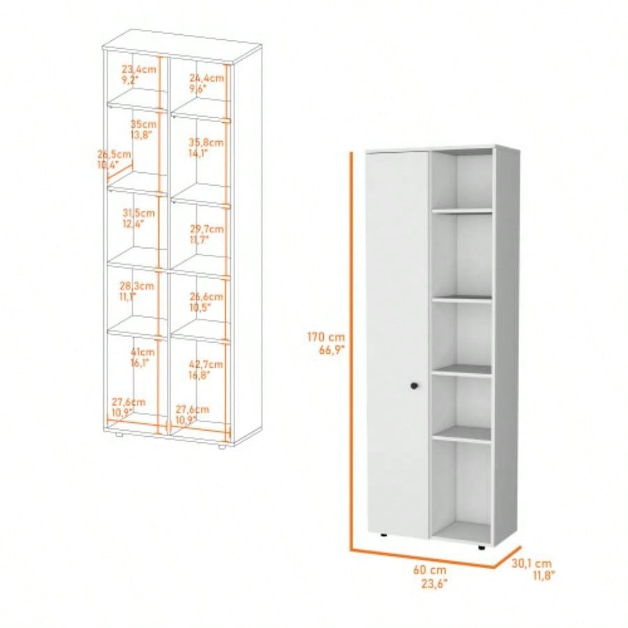 FM FURNITURE Multistorage Kitchen Pantry with 1 door and 5 open shelves, White