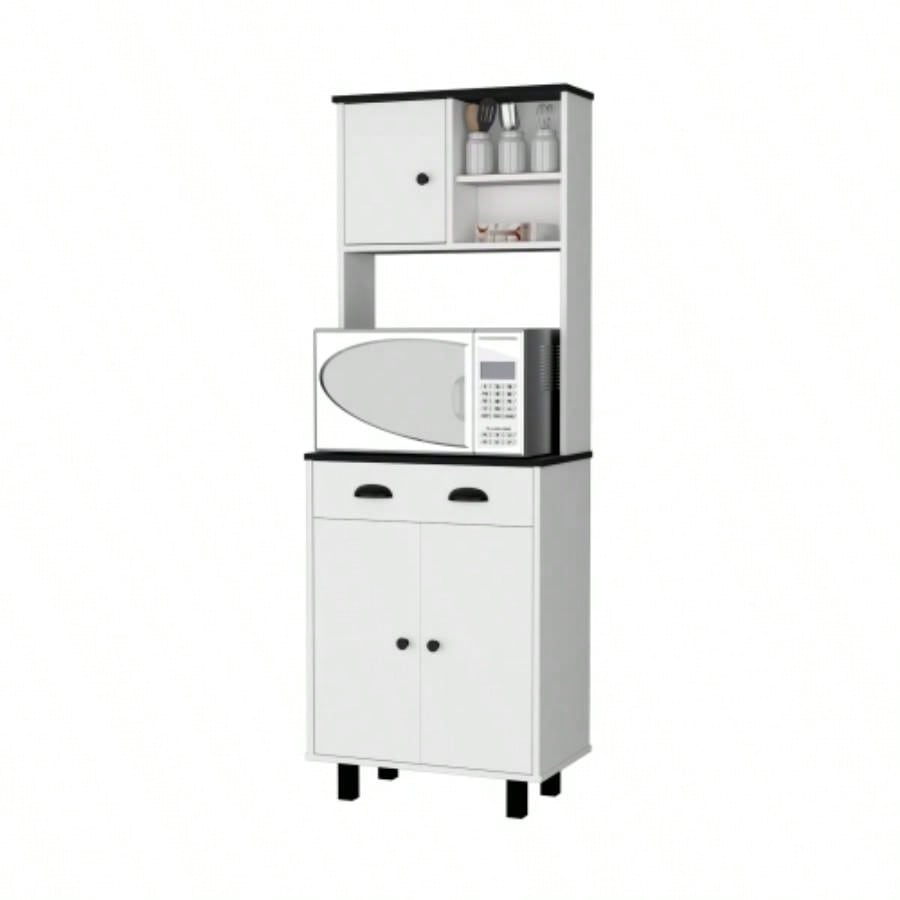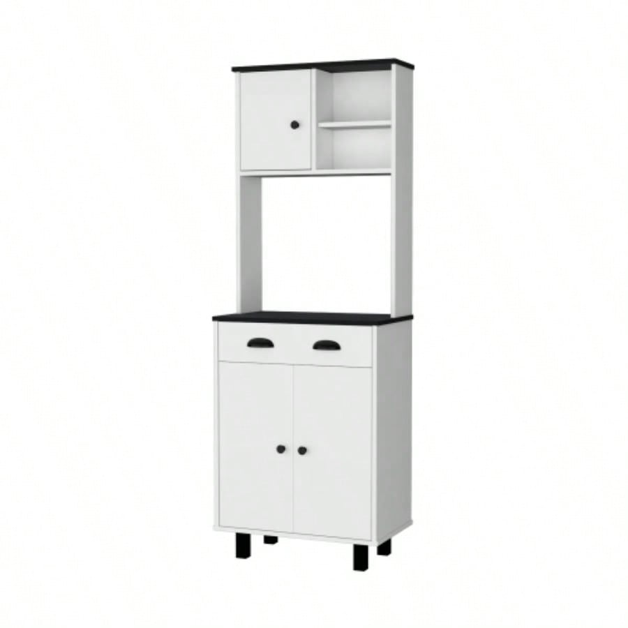 FM FURNITURE Tacna Kitchen Pantry with ample storage, 2 open shelves, 1 drawer, 1 cabinet, 2 shelves, White+wengue
