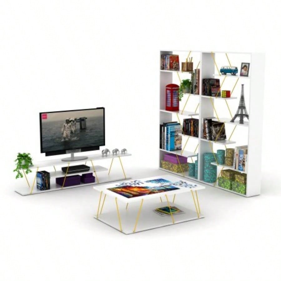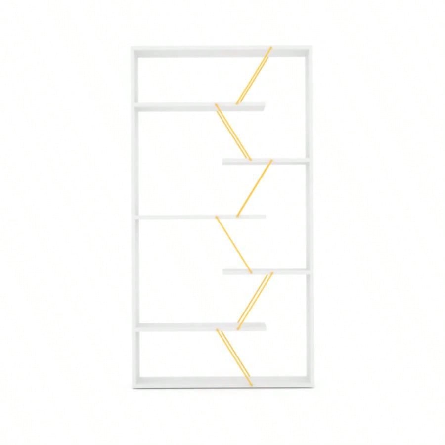Furnish Home Store Wood Frame Etagere Open Back 6 Shelves Bookcase Industrial Bookshelf Office and Living Rooms Modern Bookcases Large Bookshelf Organizer, White/Yellow