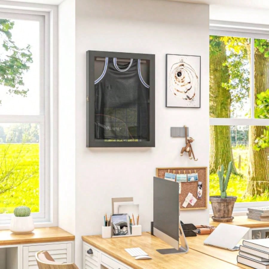 HOMCOM 24x 32 Jersey Display, Wall - Mounted Memorabilia Acrylic Shadow Box with Hanger, Black