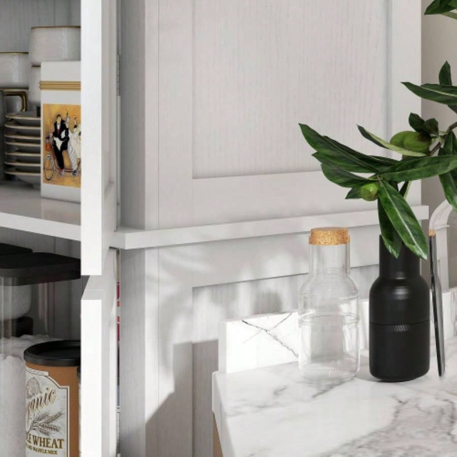 HOMCOM 72.5 Freestanding Kitchen Pantry Cabinet, Tall Storage Cabinet with 4 Doors and 2 Adjustable Shelves Dining Room, White Wood Grain