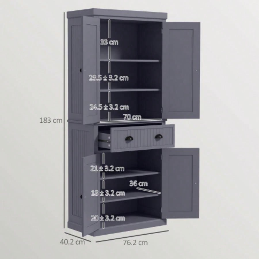 HOMCOM 72 Kitchen Pantry Cabinet, Freestanding Tall Storage Cabinet, Traditional Kitchen Cabinet with 4 Doors, Drawer and 3 Adjustable Shelves Dining Room, Navy Blue