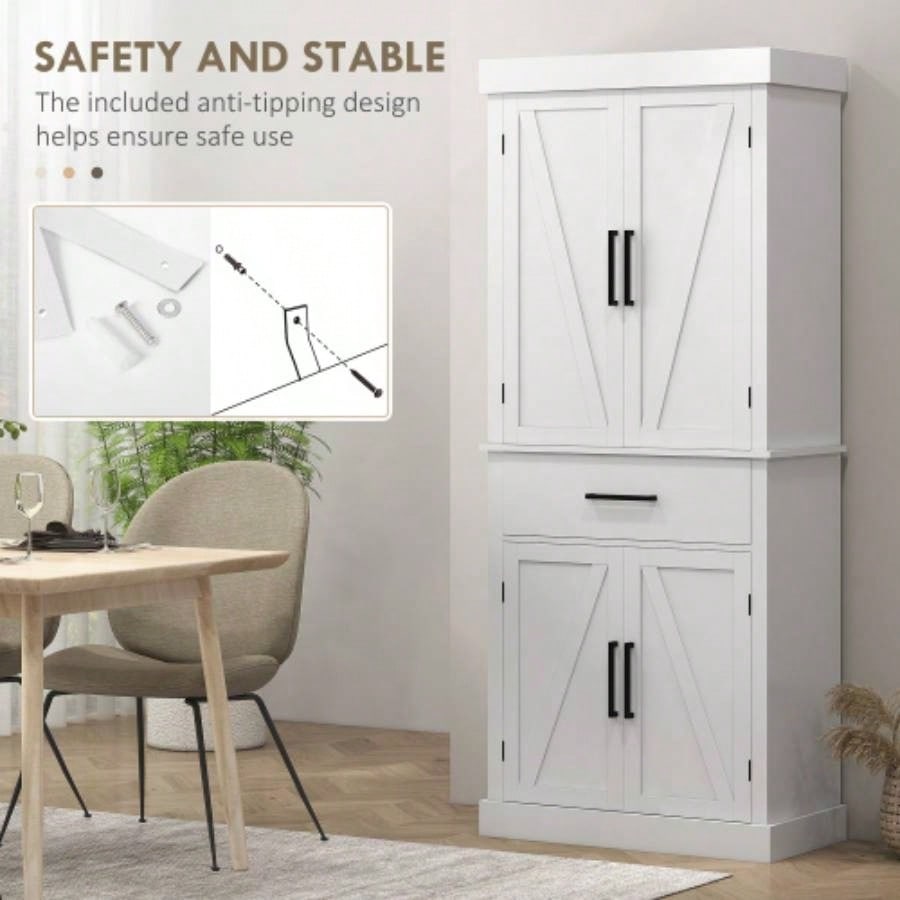 HOMCOM 72 Tall Kitchen Pantry Storage Cabinet, Farmhouse Freestanding Kitchen Cabinet with 4 Barn Doors, Drawer, 5 - Tier Shelf and Adjustable Shelves, White