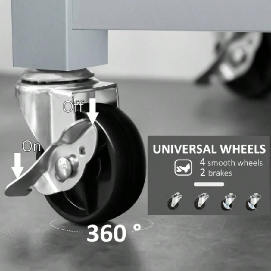 HOMCOM Kitchen Island with Stainless Steel Top, Traditional Kitchen Island with Storage, 2 - Tier Open Shelves, Drawers, Light Gray