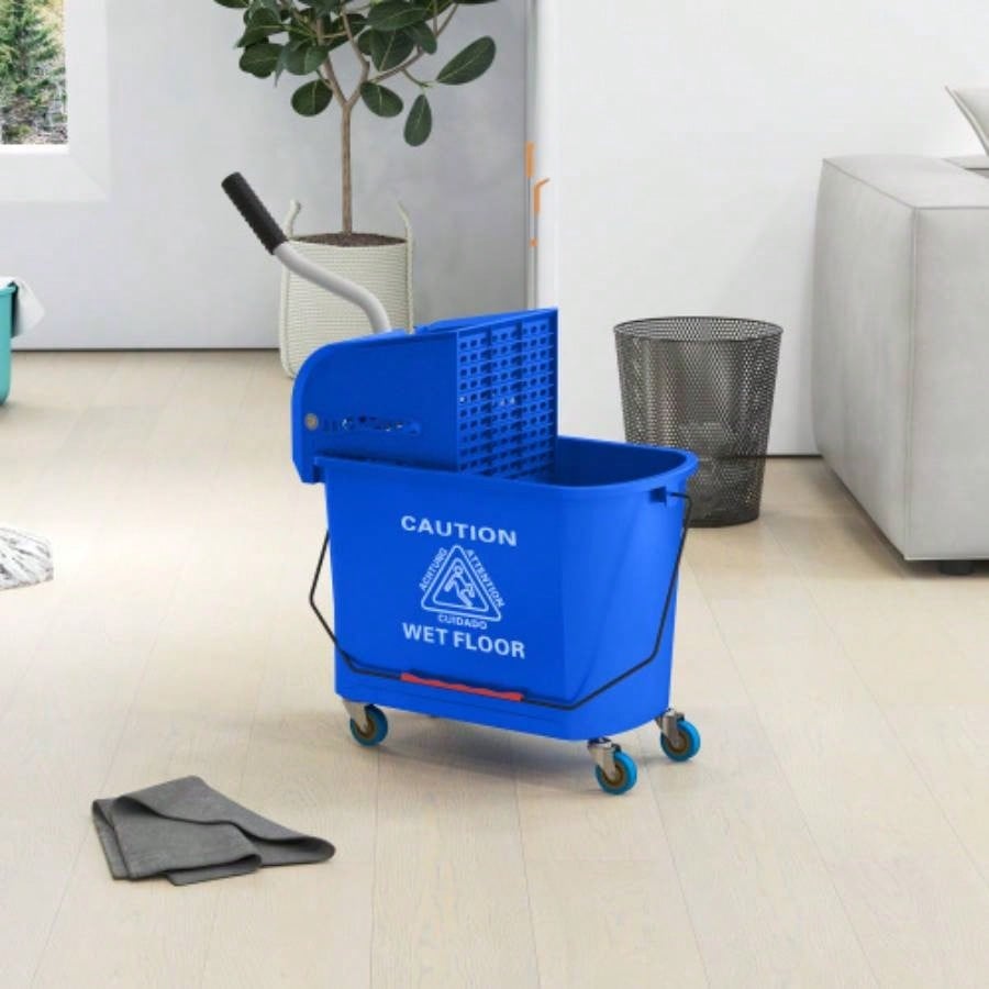 HOMCOM Mop Bucket with Wringer on Wheels Floor Cleaning, 21 Quart, Separate Dirty and Clean, Blue