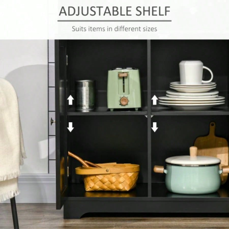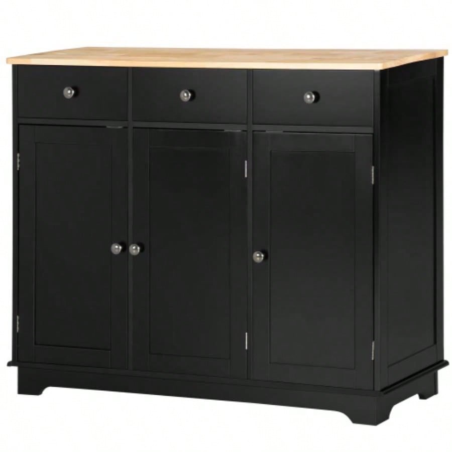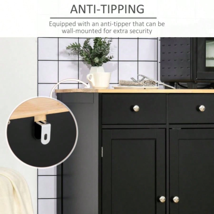 HOMCOM Sideboard with Solid Wood Countertop, Modern Kitchen Storage Cabinet, Coffee Bar Cabinet with 3 Drawers, Doors and Adjustable Shelf, Black