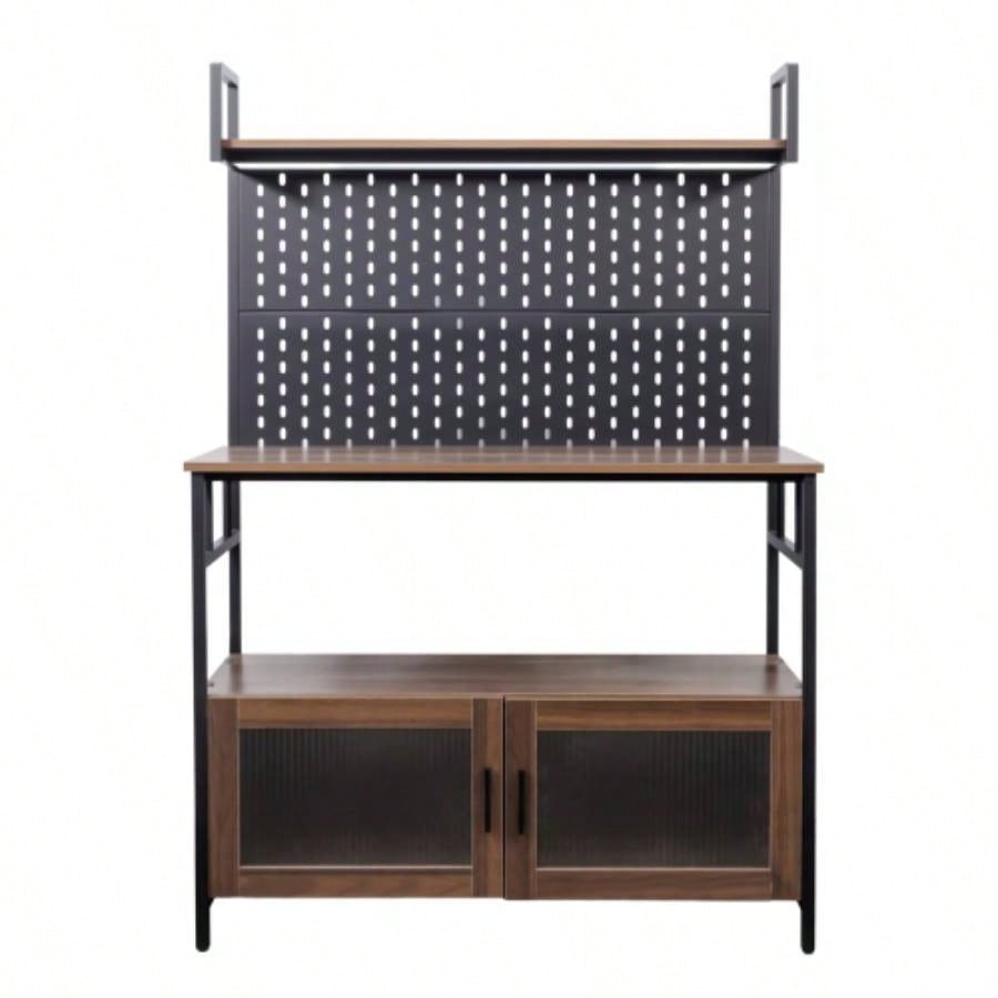 Kitchen Bakers Rack with Door, Microwave Oven Stand, Utility Storage Shelf, Durable Kitchen Organizer Small Spaces