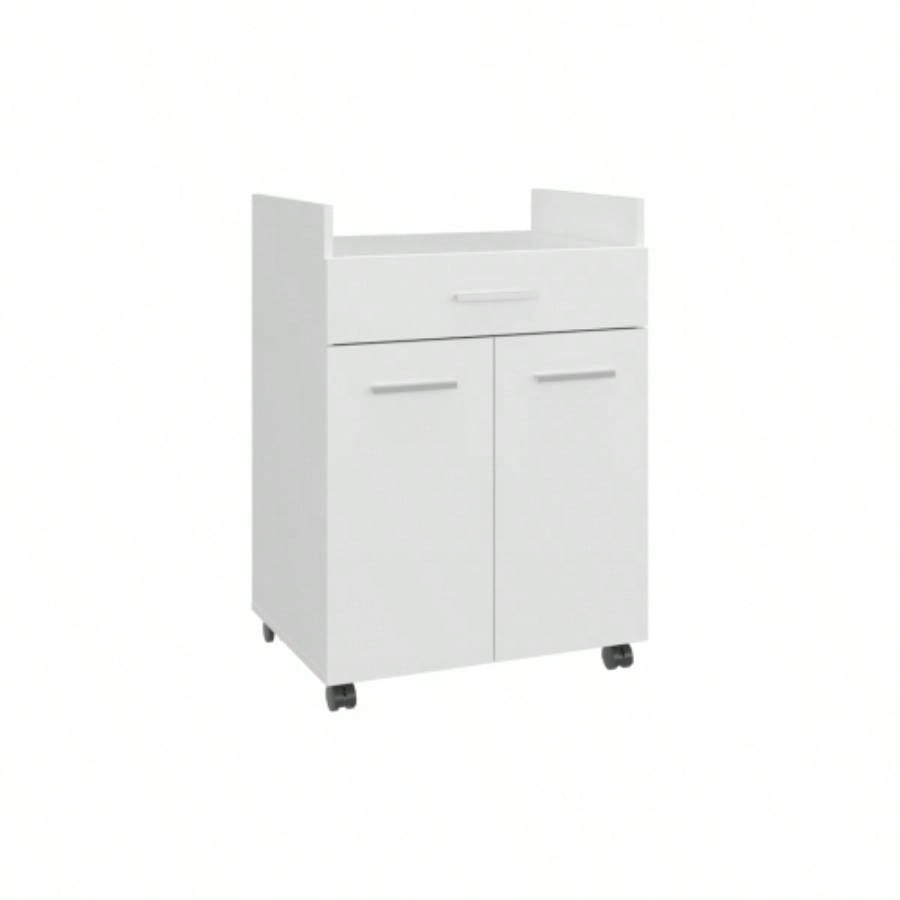Kitchen Cart, 2 Doors, 1 Drawer, 4 Wheels, 2 Shelves, White