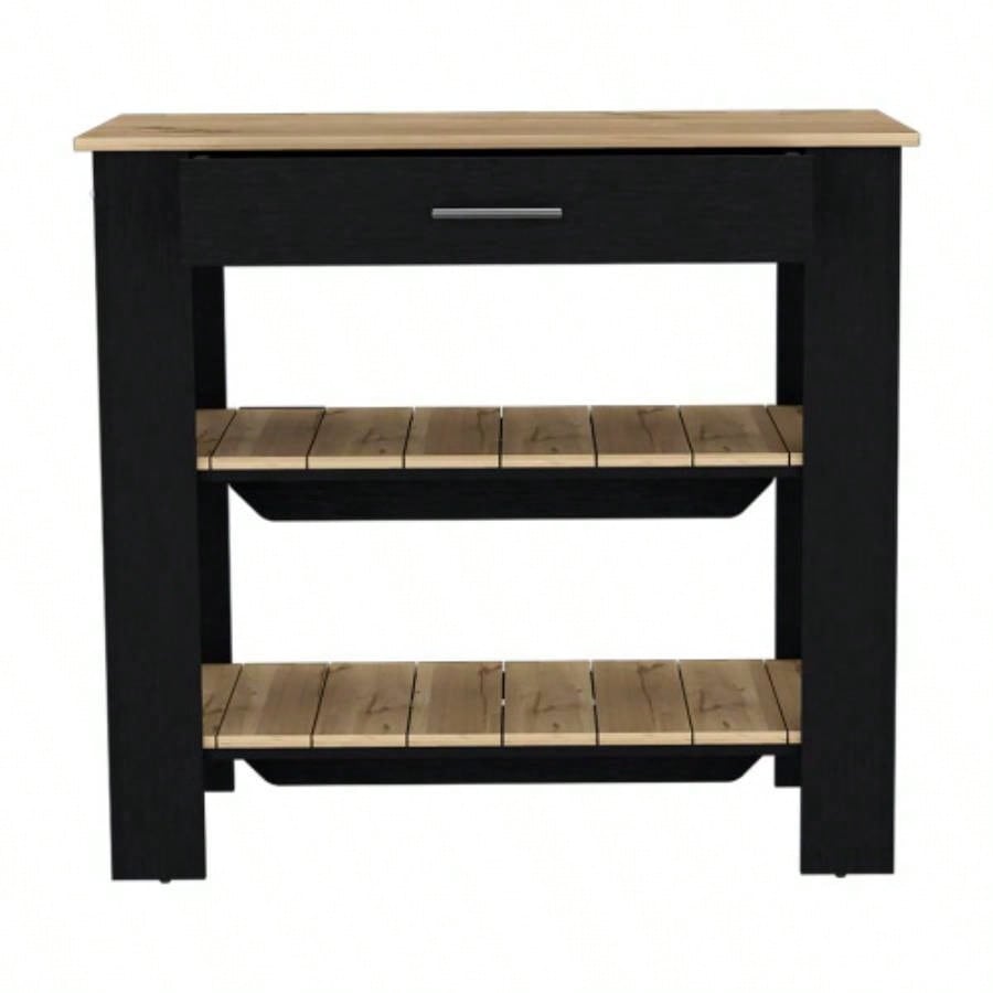 Kitchen Island 40 Inches Dozza, Two Shelves, Black Wengue/ Light Oak