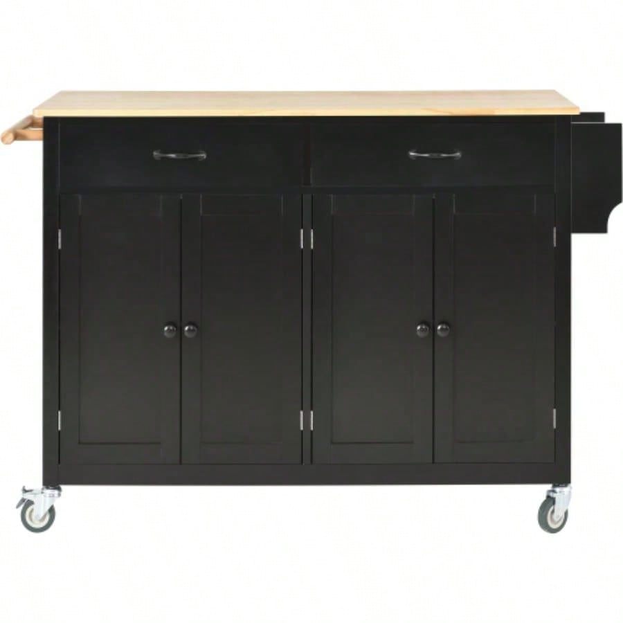 Kitchen Island Cart with Solid Wood Top and Locking Wheels, 54.3 Inch Width, 4 Door Cabinet and Two Drawers, Spice Rack, Towel Rack Black