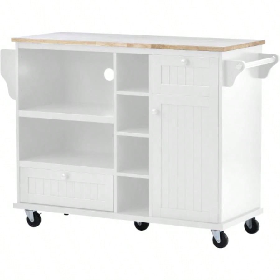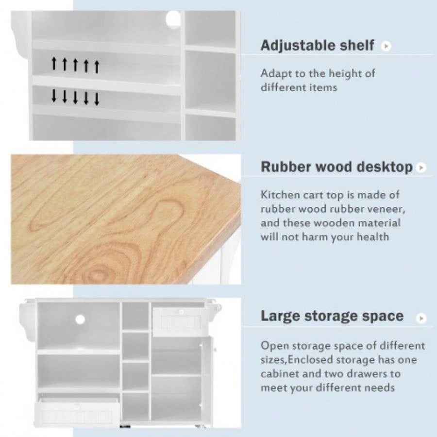 Kitchen Island Cart with Storage Cabinet and Two Locking Wheels, Solid wood desktop, Microwave cabinet, Floor Standing Buffet Server Sideboard Kitchen Room, Dining Room, BathroomWhite