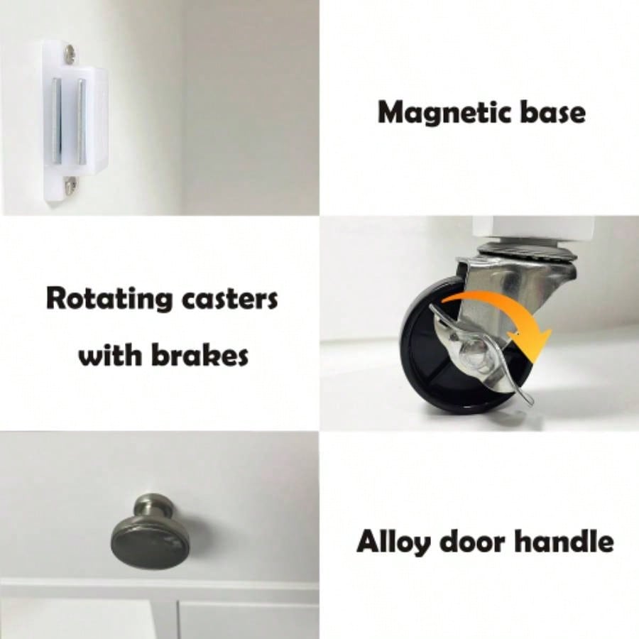 Kitchen island rolling trolley cart with Adjustable Shelves and towel rack rubber wood table top