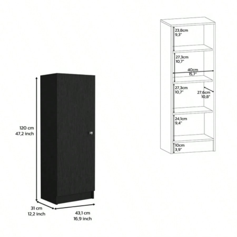 Kitchen Pantry 47 H, One Door Cabinet, Four Interior Shelves, Black
