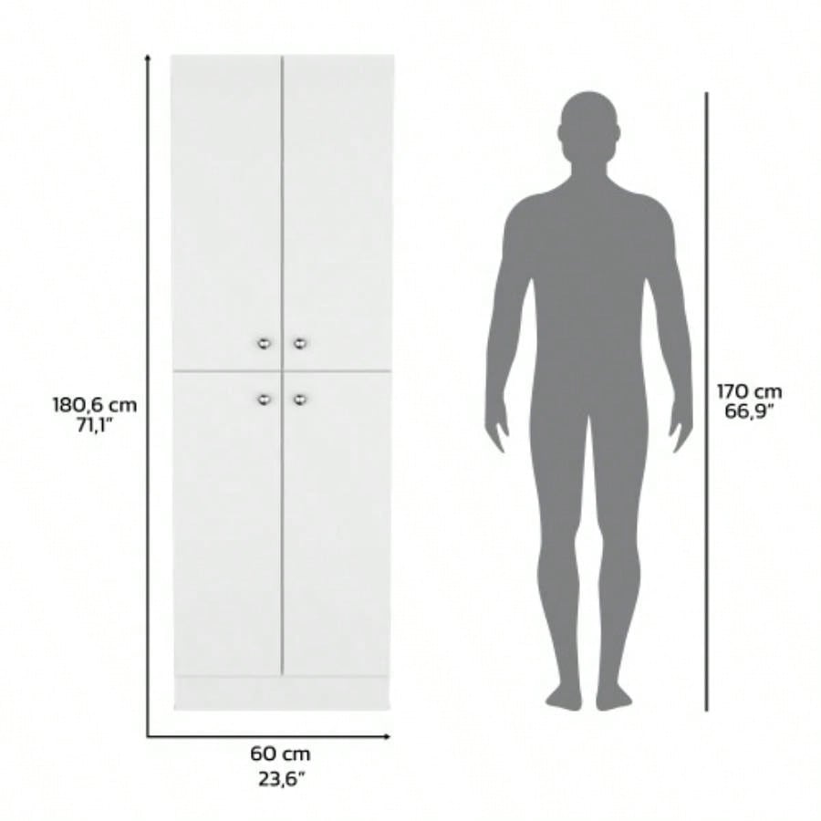 Kitchen Pantry 71 H, 4 Doors, 5 Adjustable Shelves, Laundry, White