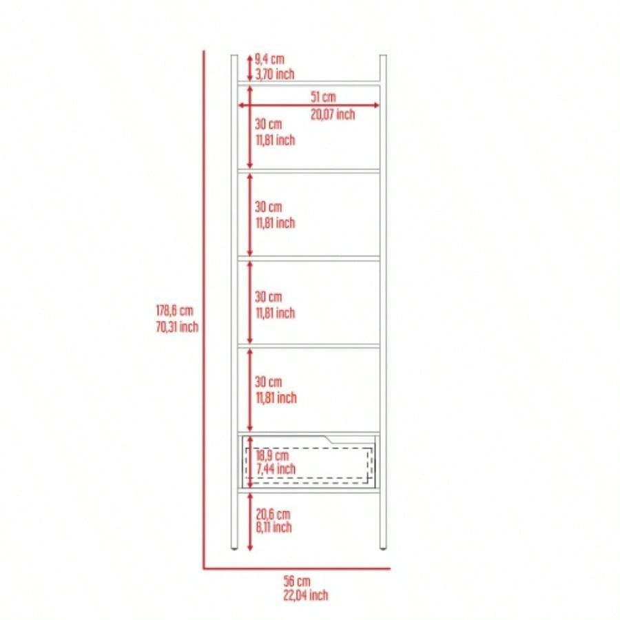 Ladder Bookcase Bull, One Drawer, Five Open Shelves, Dark Walnut