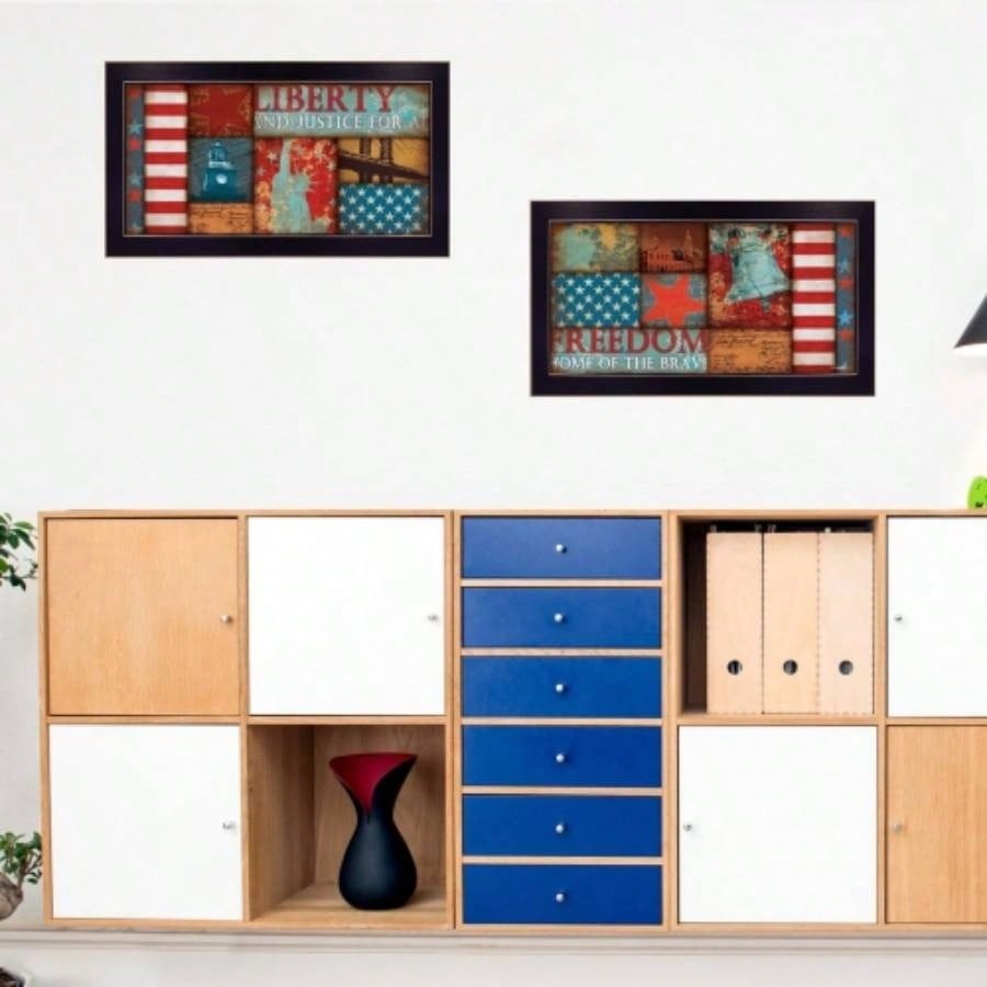 Liberty and Freedom 2 - Piece Vignette By Marla Rae, Printed Wall Art, Ready To Hang Framed Poster, Black Frame