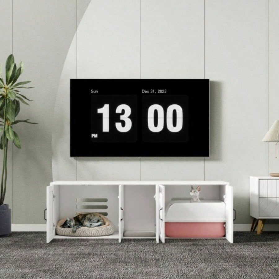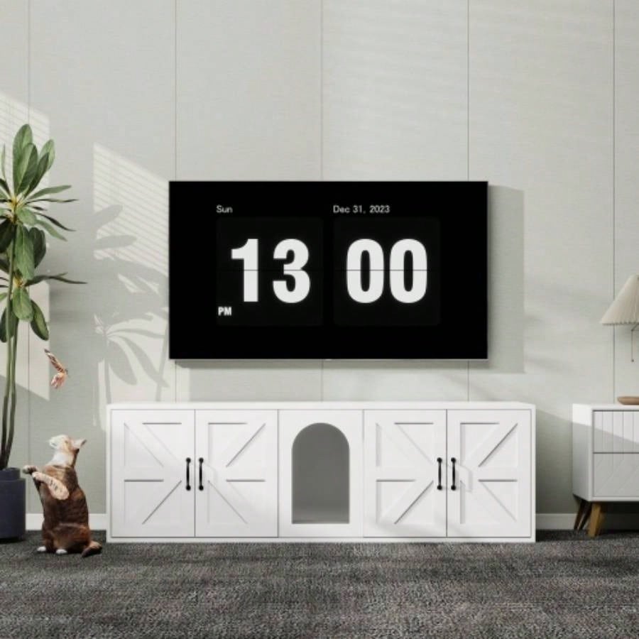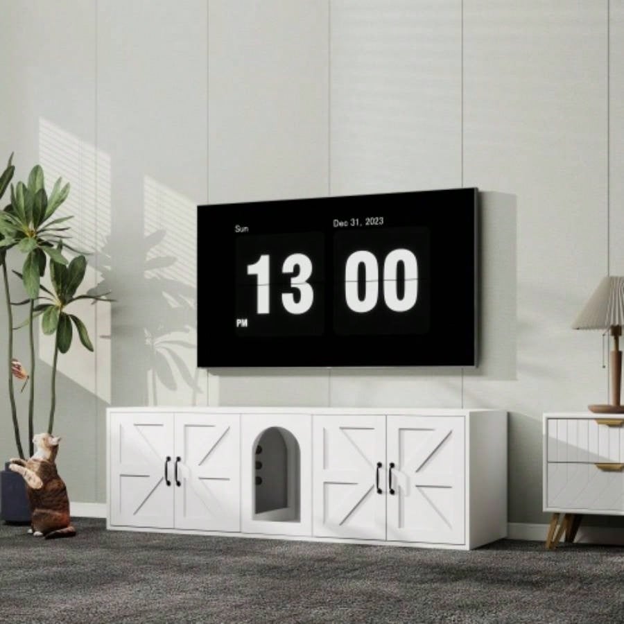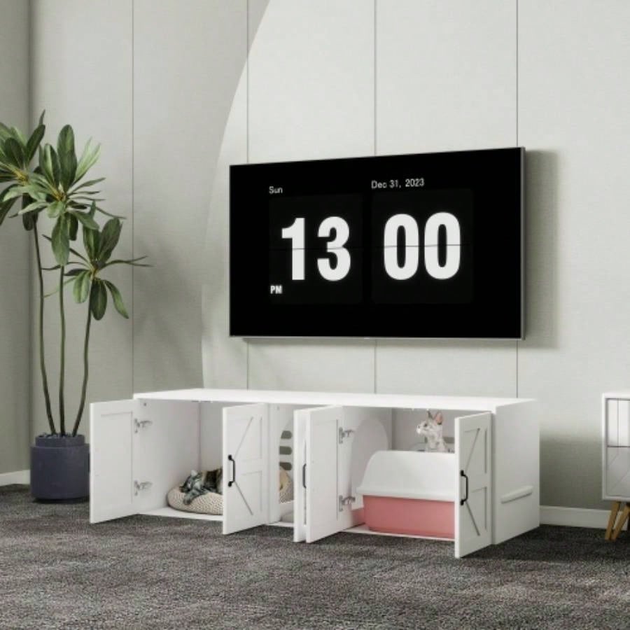 Litter Box Enclosure 2 Cats, Modern Litter Box Furniture with Double Room, Wooden Litter Box Furniture with Door, 59.05Lx 17.71x 18.89H - White