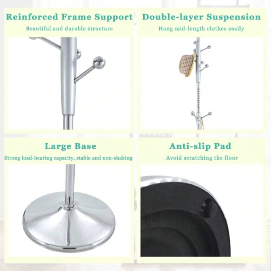 Main Stainless Steel Spray Painted Hanger, Modern Silver Stainless Steel Coat Rack, Solid Wood Reinforcement At Bracket, 72 Inch Raised Design With Detachable Bracket Gold Optional