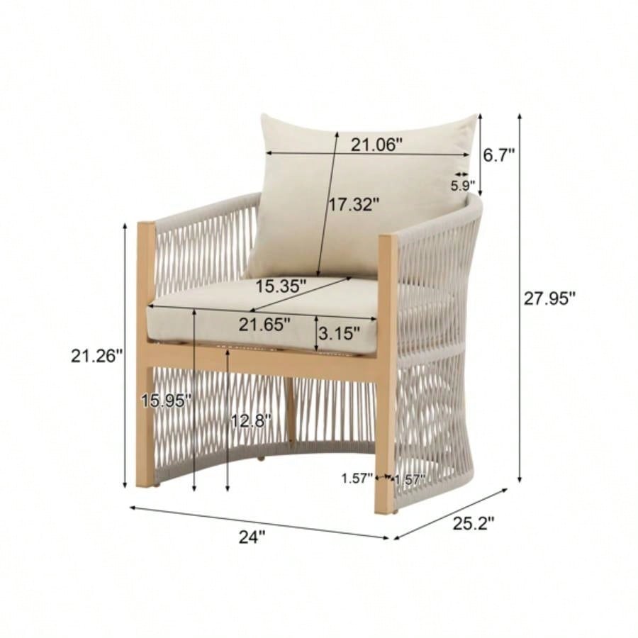 Modern Beige Curved Aluminum Lounge Chair with Stylish Rope - Weave Design and Cushioned Comfort, Outdoor Living