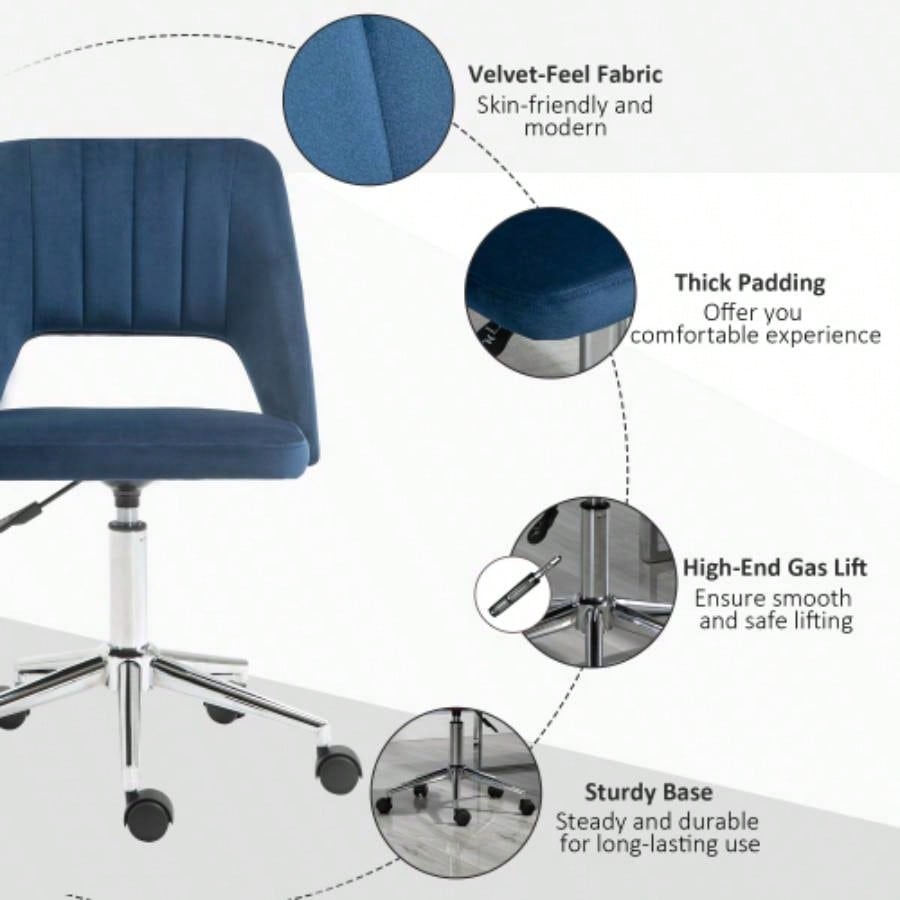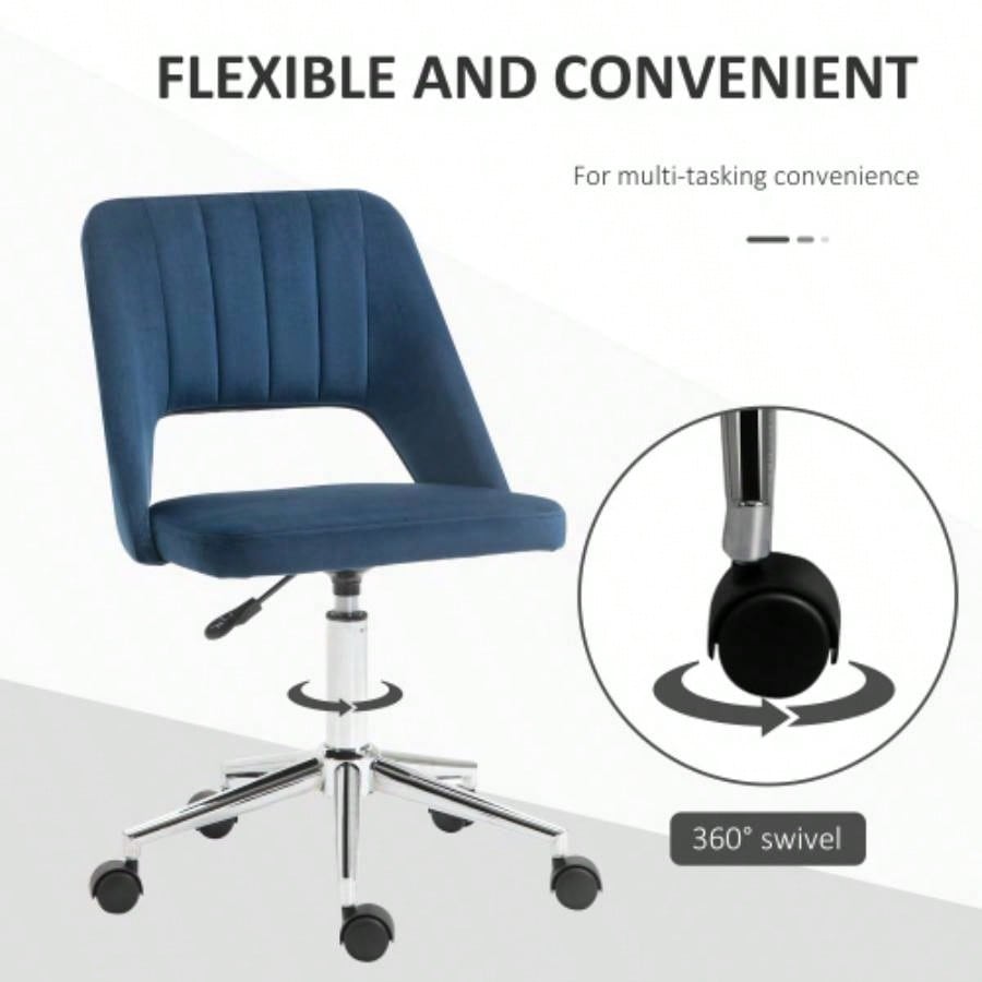 Modern Mid Back Office Chair with Velvet Fabric, Swivel Computer Armless Desk Chair with Hollow Back Design Home Office, Blue