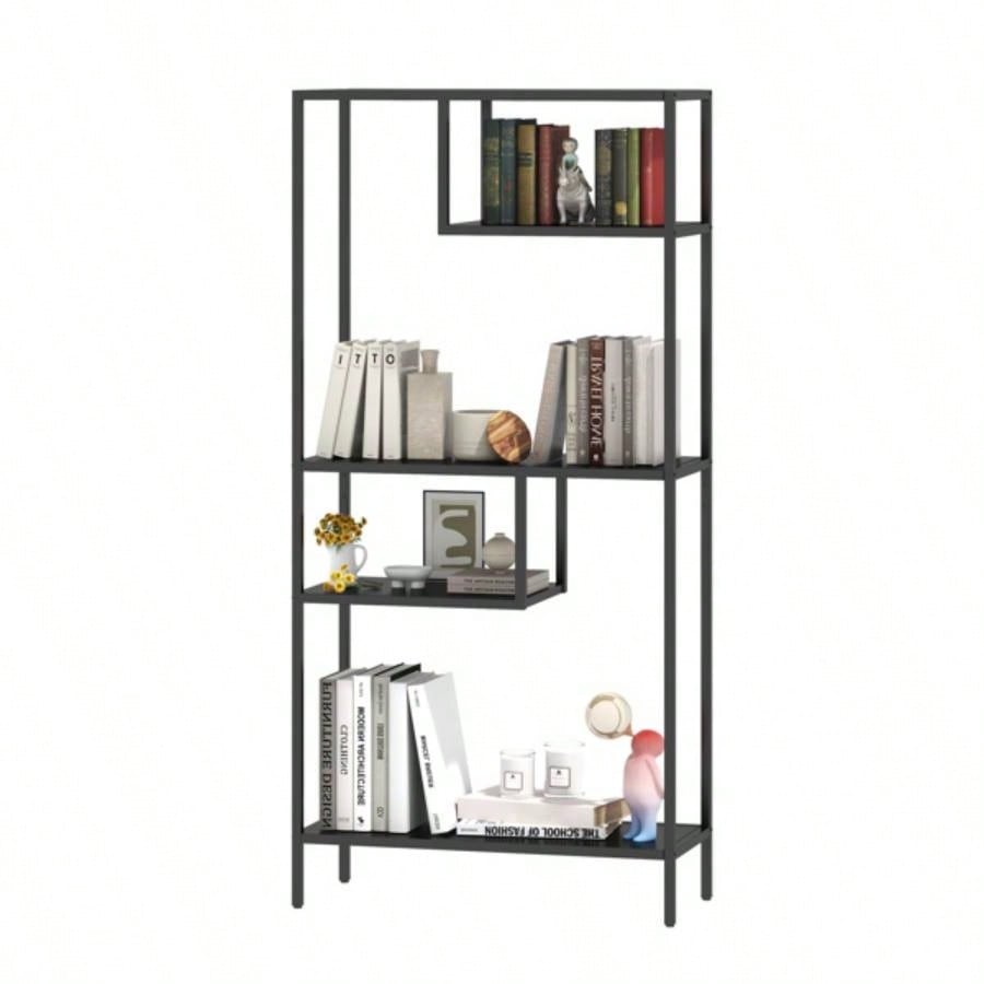 Modern Storage Shelf with 4 Compartments Metal, Freestanding Organizer, Book Shelves Display Shelves Living Room, Bedroom, Home Office