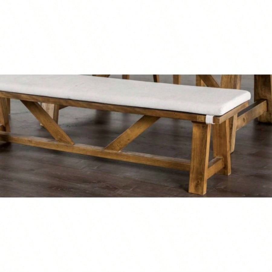 Modern Upholstery With Cushion Rustic Style Trestle Base Upholstered Brown And White