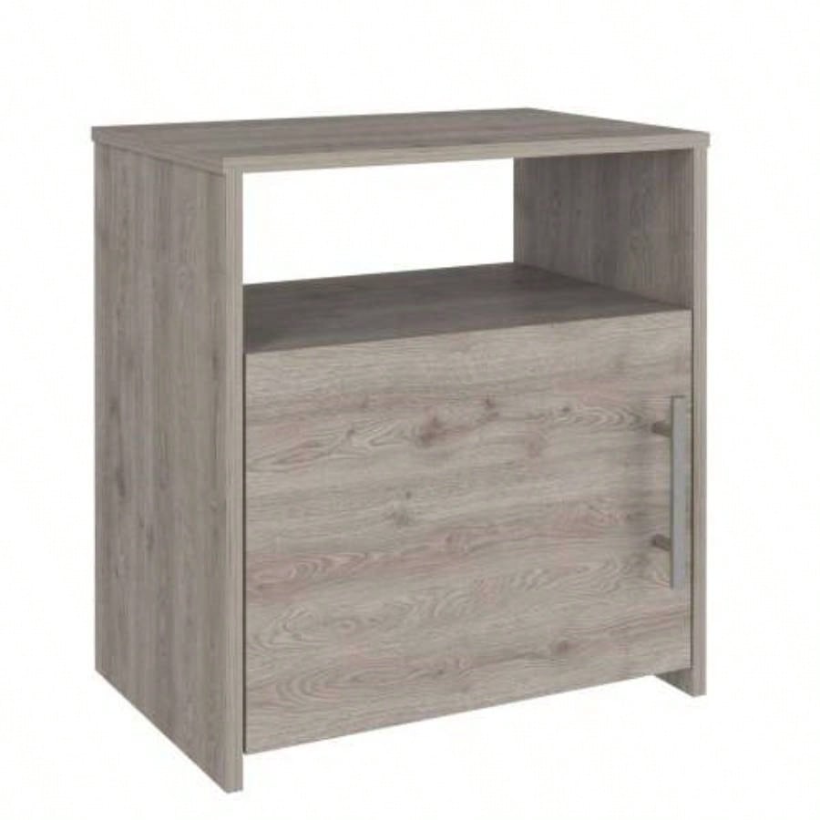 Nightstand, Single Door Cabinet, Metal Handle, One Shelf, Superior Top, Light Gray