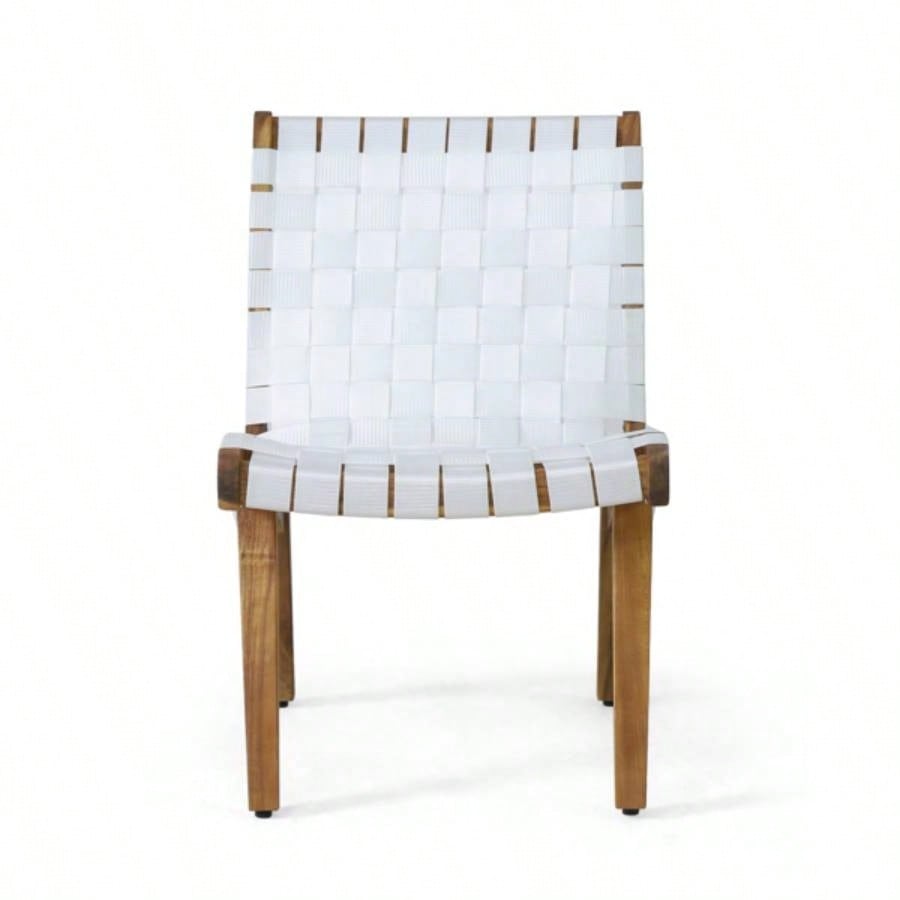 Outdoor Acacia Wood and Rope Weave 3 Piece Chat Set, White and Teak