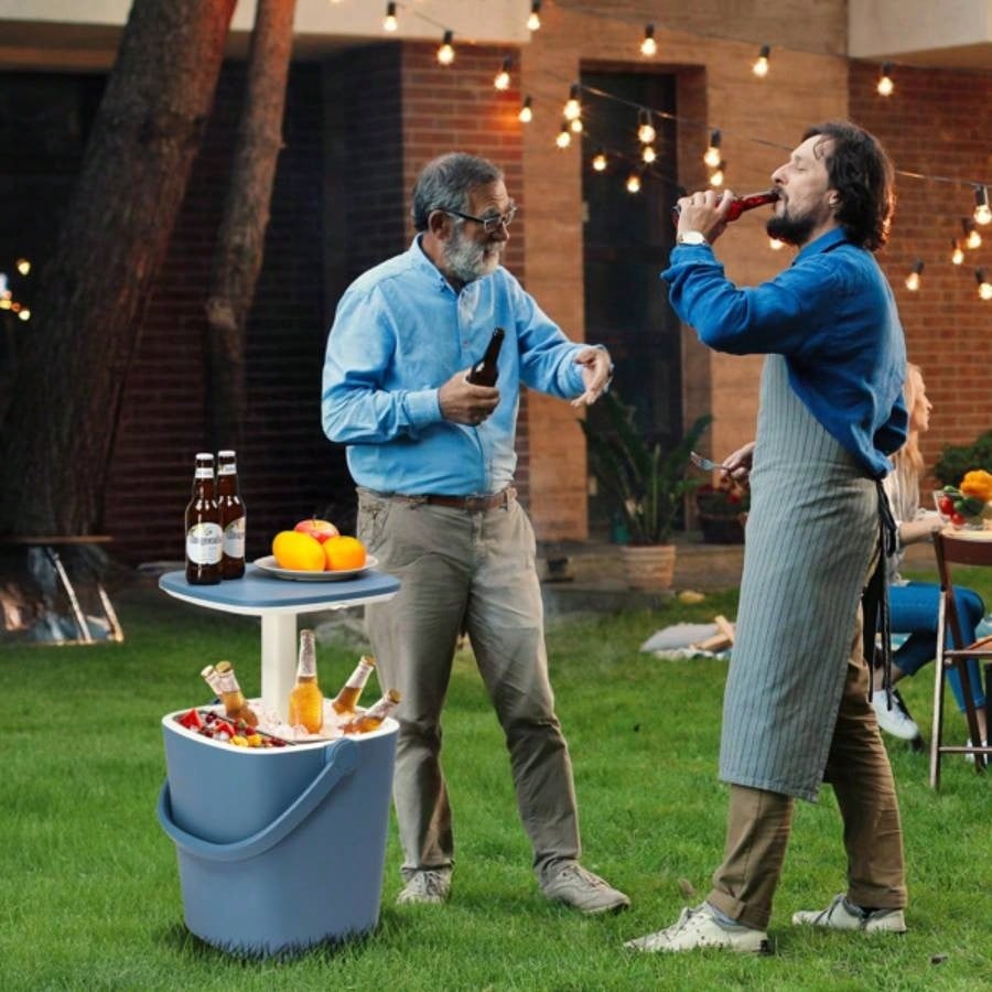 Outdoor Cooler Table, 4 Gallon Portable Cooler Side Table with Handle, Bottle Opener and Lift Top Lid, All - Weather Resistant Patio Cooler Cool Bar Camping, Picnic, Beach, Pool, Party