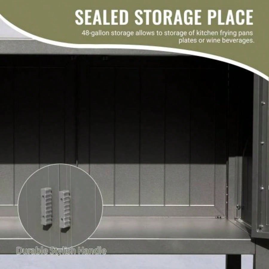 Outdoor Kitchen Island with Storage, Aluminum Kitchen Storage Island Outdoor Grill Table, Freestanding Outdoor Prep Table Grill Storage Cabinet with Protective Cover BBQ, Deck, Patio