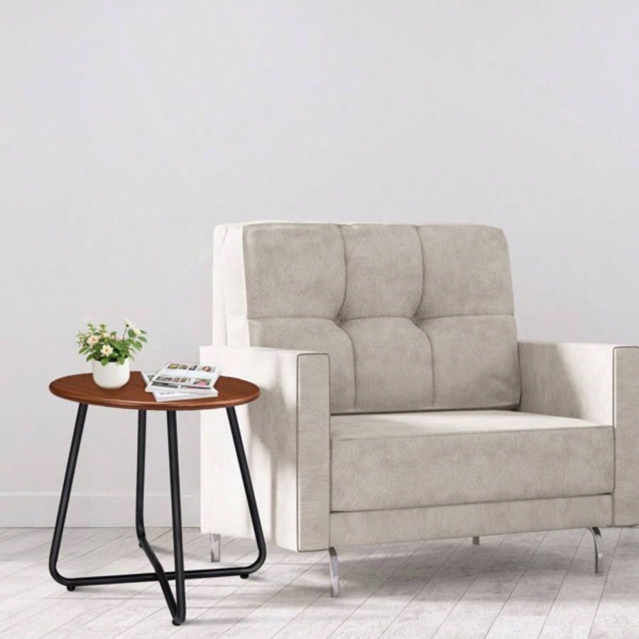 Outdoor Side Table with Imitation Wood Tabletop, Weather Resistant Patio Side Table, Round Outdoor End Table Patio Yard Balcony Garden