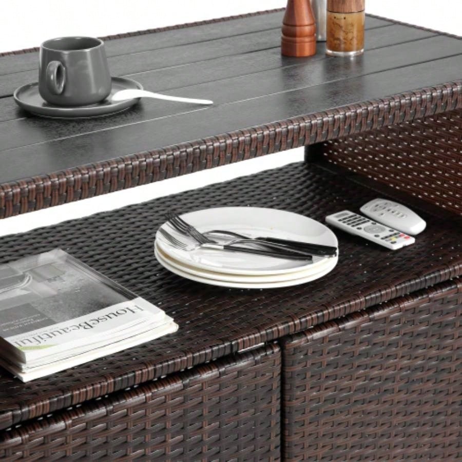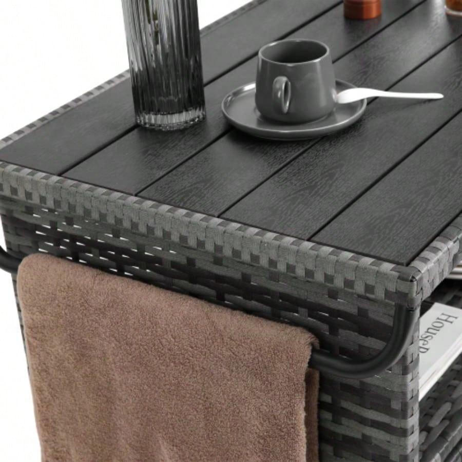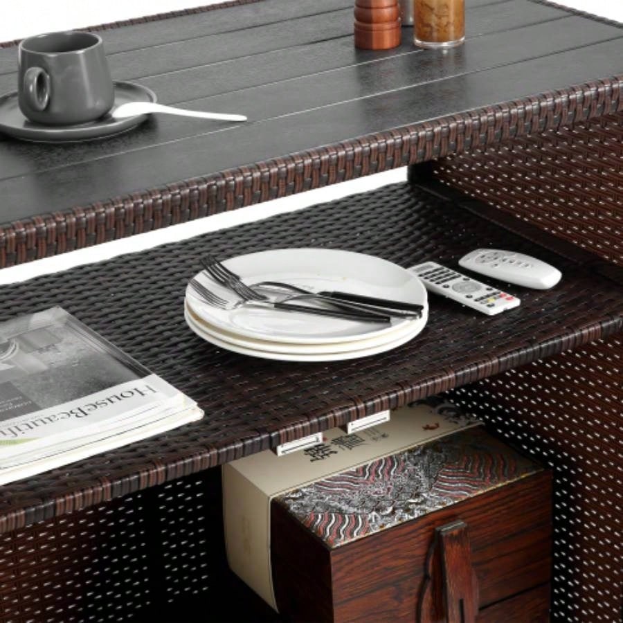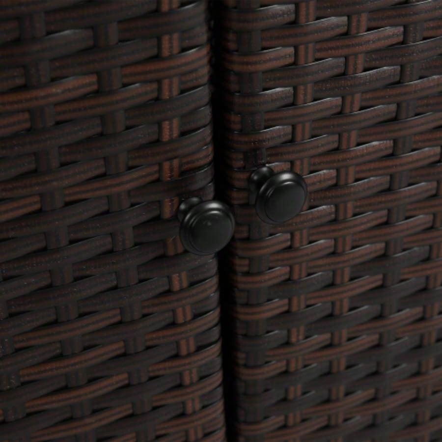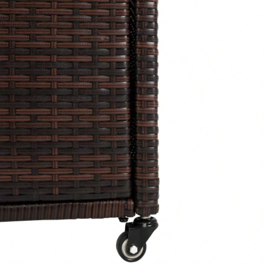 Outdoor Wicker Bar Cart, Patio Wine Serving Cart/Wheels, Rolling Rattan Beverage Bar Counter Table/Glass Top Porch Backyard Garden Poolside Party, Light brown