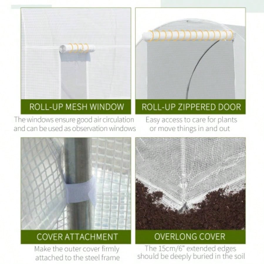 Outsunny 15xx Walk - In Tunnel Greenhouse, Large Garden Hot House Kit with 6 Roll - up Roll Up Door, Steel Frame, White