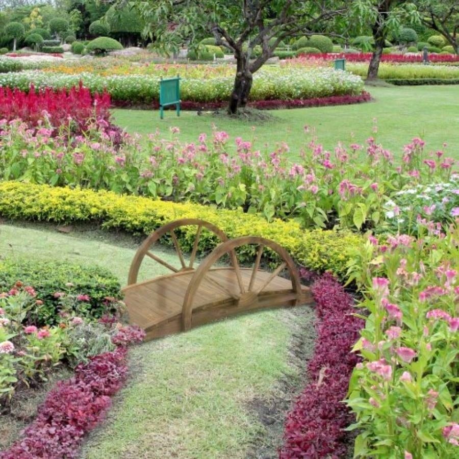 Outsunny 3.3ft Wooden Garden Bridge Footbridge with Half - Wheel Style Railings Solid Fir Construction, Stained Wood