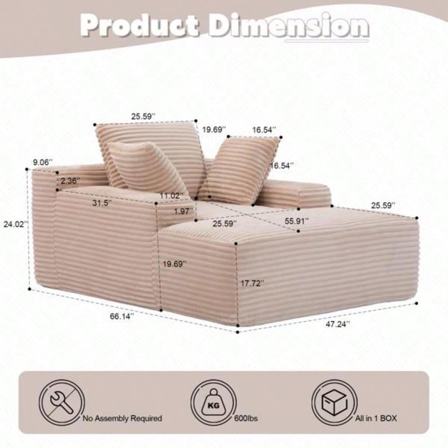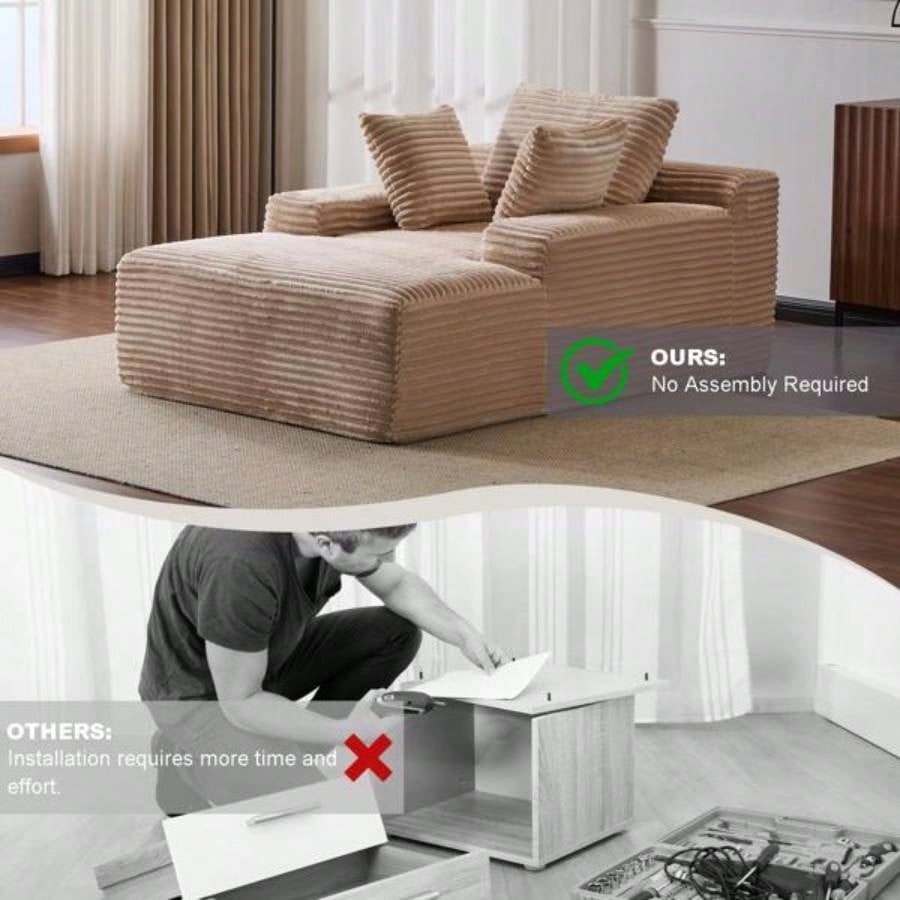 Oversized Chaise Lounge Chair Cozy Cloud Couch, Modern Plush Corduroy Upholstered Sleeper Sofa Daybed with 3 Throw Pillows and Wide Armrest Living Room, No Assembly Required, Beige