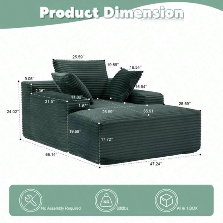 Oversized Chaise Lounge Chair Cozy Cloud Couch, Modern Plush Corduroy Upholstered Sleeper Sofa Daybed with 3 Throw Pillows and Wide Armrest Living Room, No Assembly Required, Green