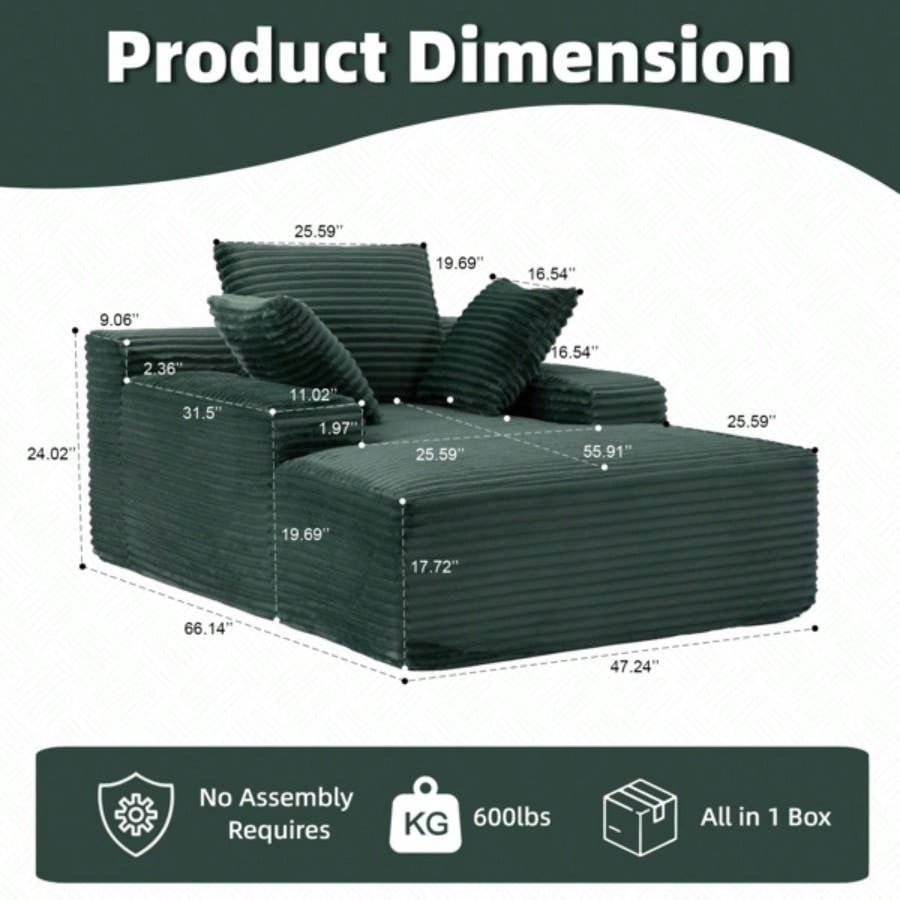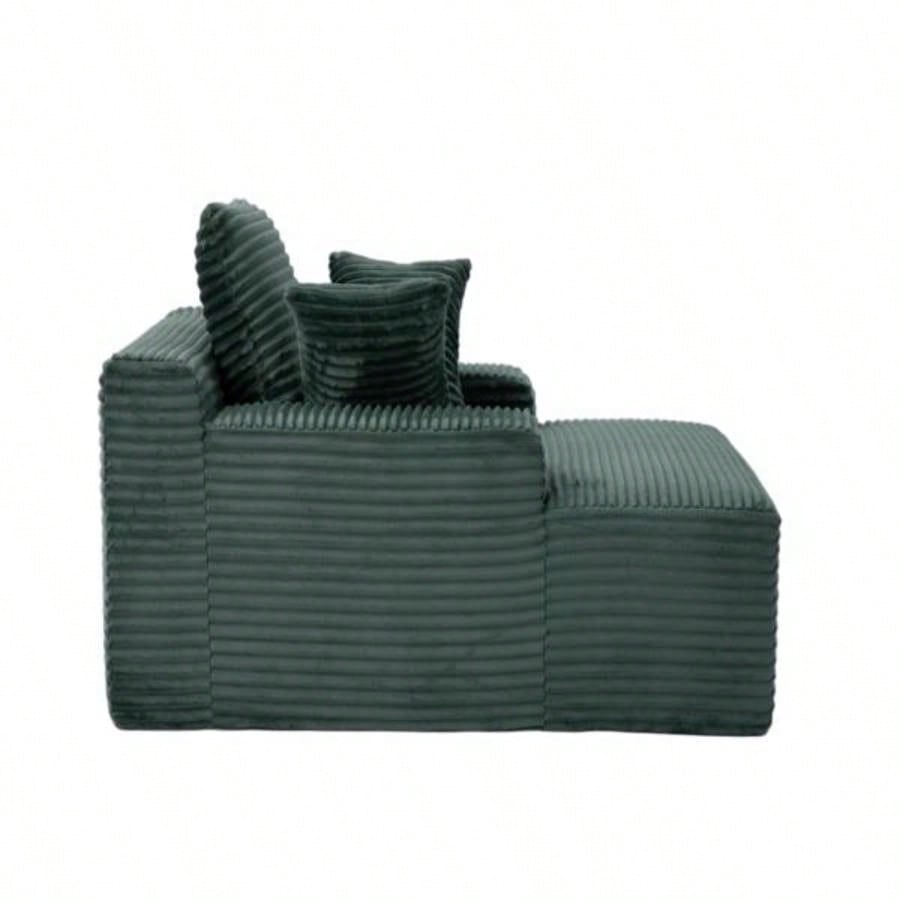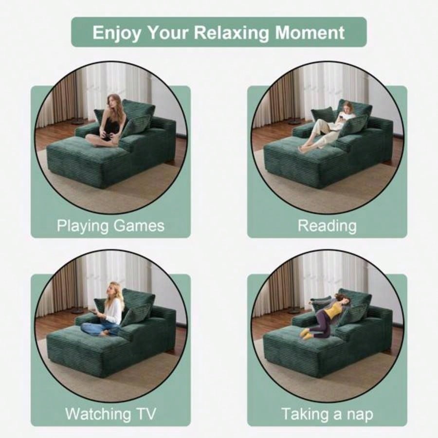 Oversized Chaise Lounge Chair Cozy Cloud Couch, Modern Plush Corduroy Upholstered Sleeper Sofa Daybed with 3 Throw Pillows and Wide Armrest Living Room, No Assembly Required, Green