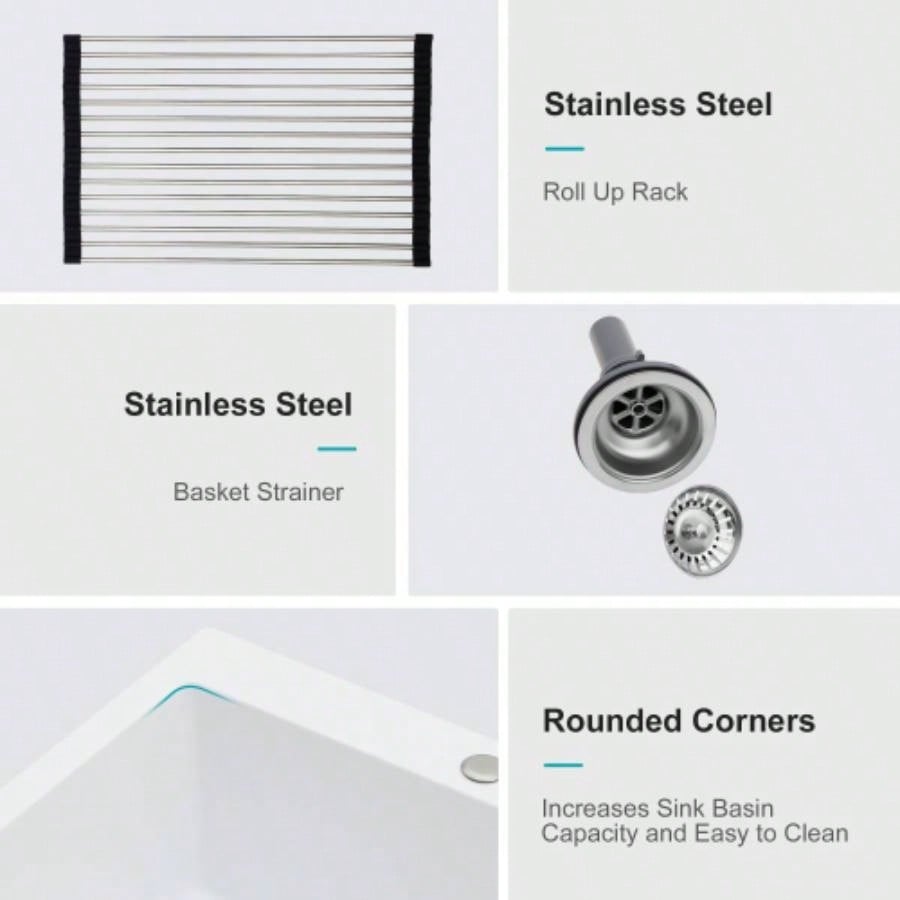 Quartz Kitchen Sink - 33x22 White granite composite Drop - in kitchen sink