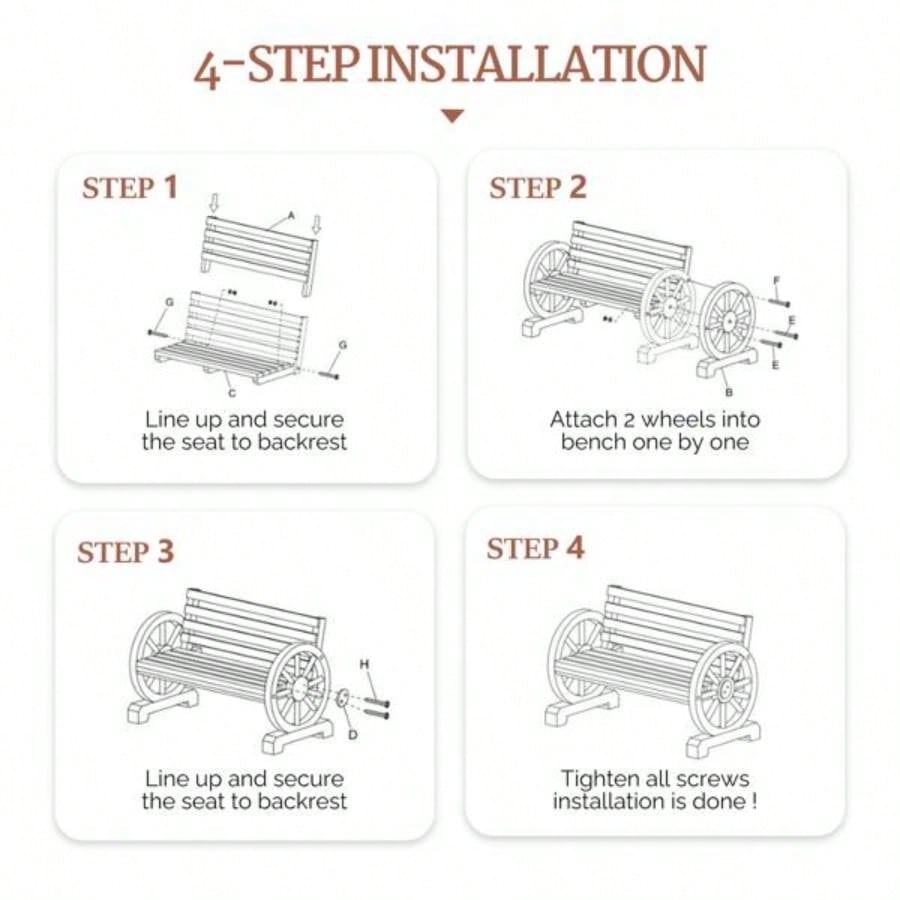 Replace 2813843690629483Rustic 2 - Person Wooden Wagon Wheel with Slatted and Backrest, Brown