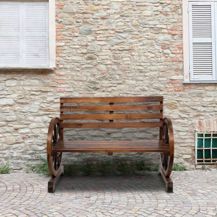 Replace 28138436Rustic 2 - Person Wooden Wagon Wheel with Slatted and Backrest, Brown