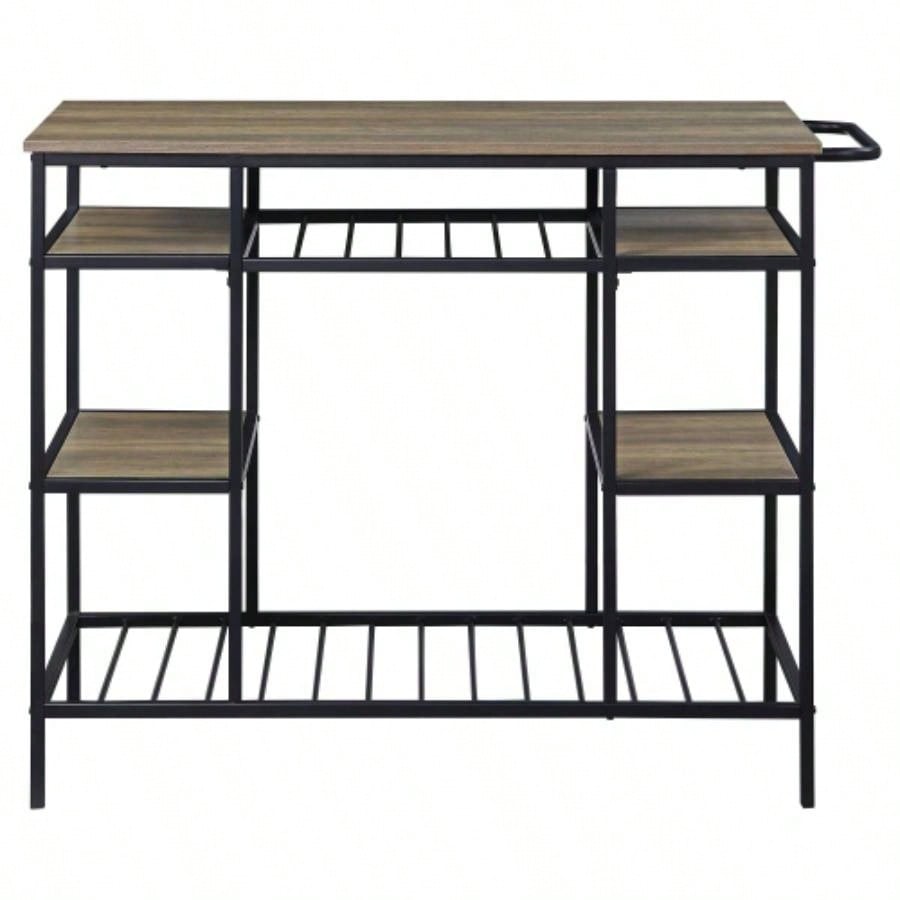 Rustic Oak and Black Kitchen Island with Open Shelving