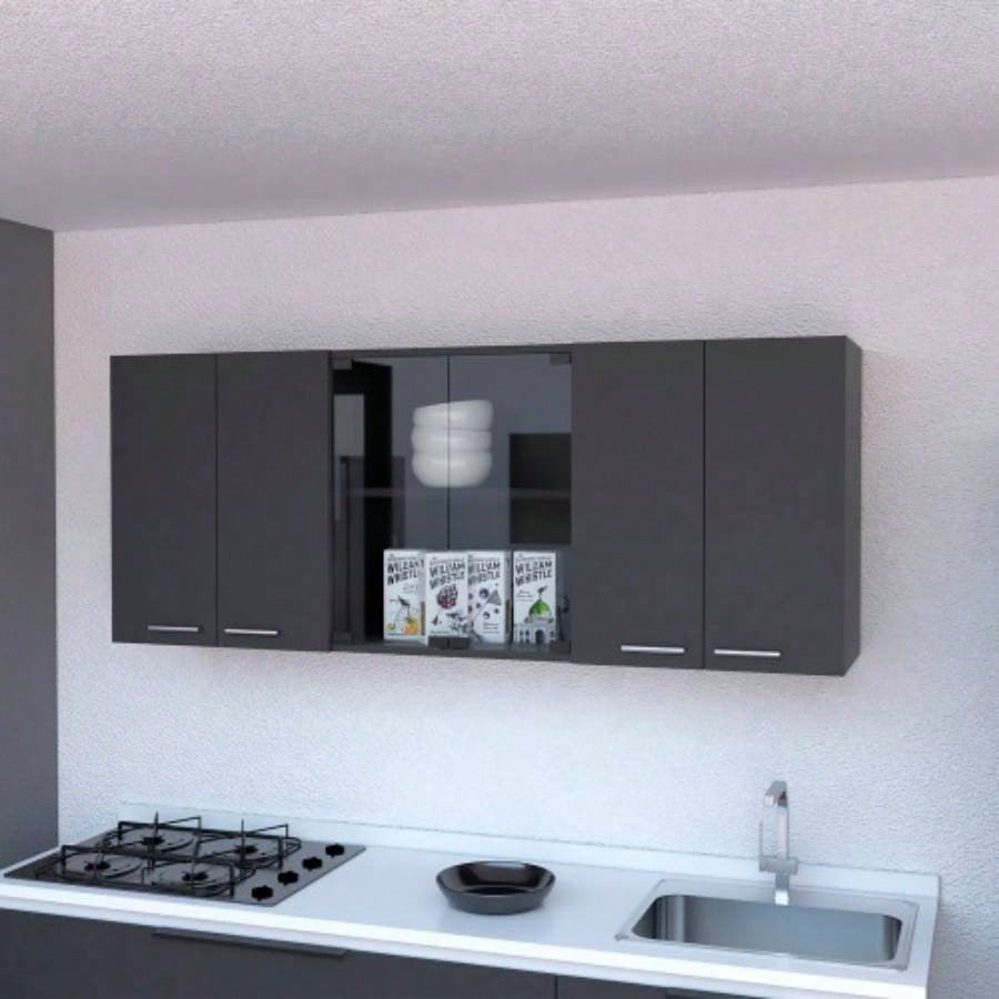 Shelton 59 - inch Two Center Glass Doors Wall Cabinet Black Wengue