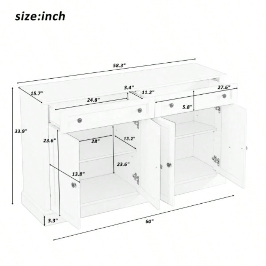 TREXM Kitchen Sideboard Storage Buffet Cabinet with 2 Drawers 4 Doors Adjustable Shelves Dining Room, Living Room Antique White
