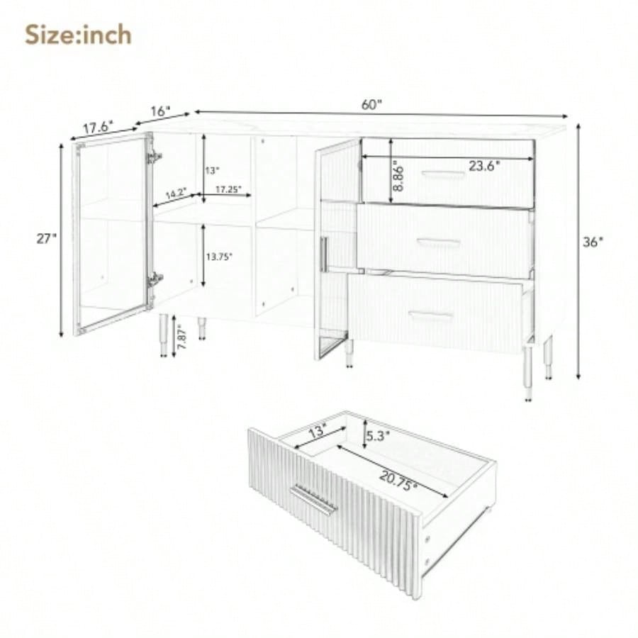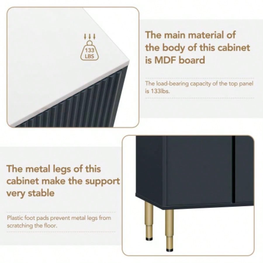 TREXM Modern Sideboard MDF Buffet Cabinet Marble Sticker Tabletop and Amber - yellow Tempered Glass Doors with Gold Metal Handles Navy Blue