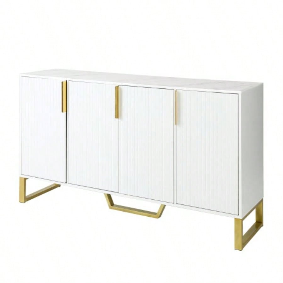 TREXM Modern sideboard with Four Doors, Metal handles and Adjustable Shelves Kitchen Cabinet White