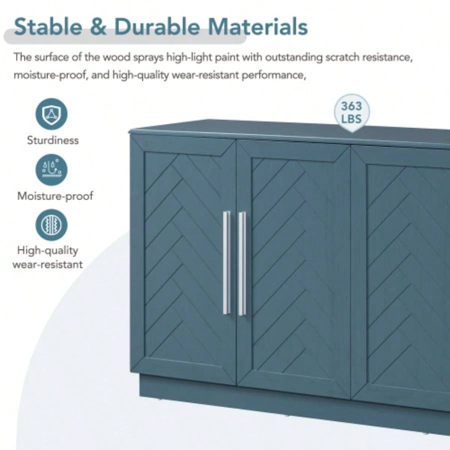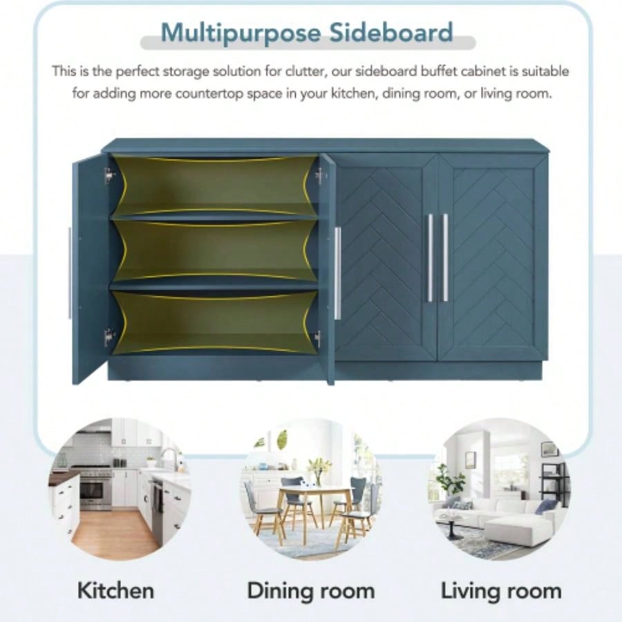 TREXM Sideboard Buffet Cabinet with Storage, Buffet Cabinet with Adjustable Shelves and Silver Handles Sideboard Cabinet Kitchen, Dining Room, Living Room, Antique Blue