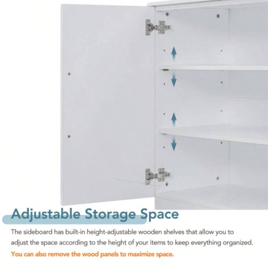 TREXM Sideboard Buffet Cabinet with Storage, Buffet Cabinet with Adjustable Shelves and Silver Handles Sideboard Cabinet Kitchen, Dining Room, Living Room, White