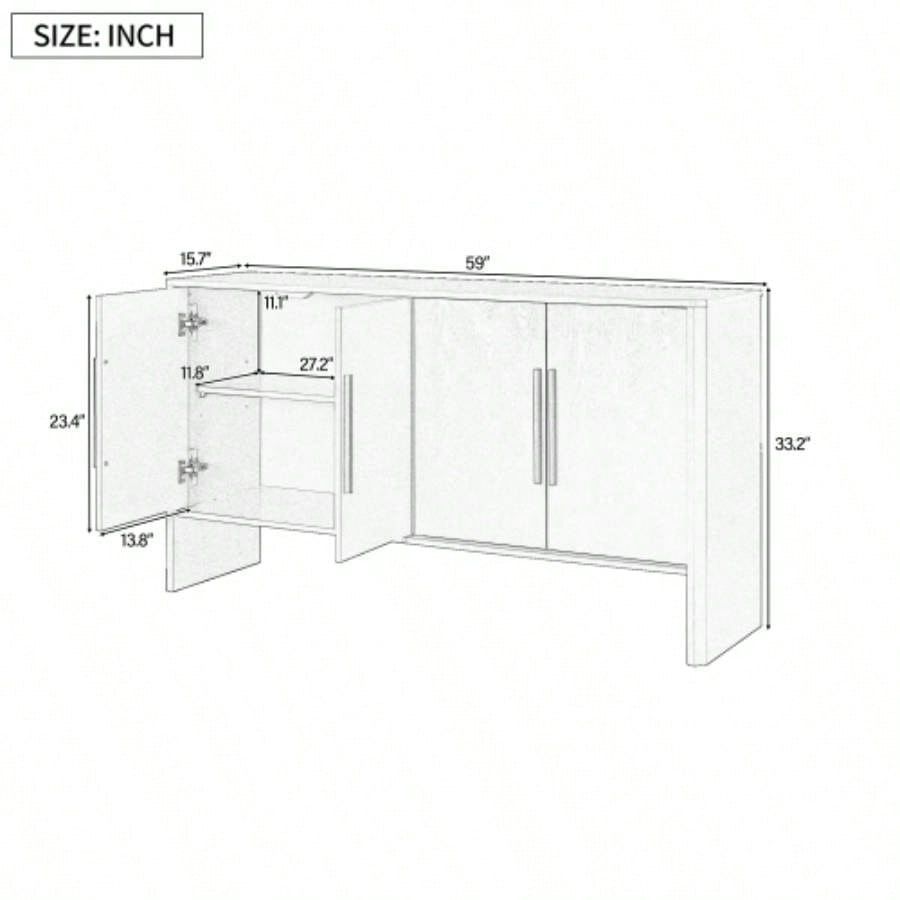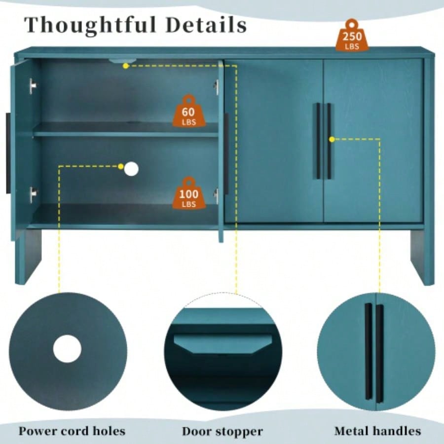 TREXM Sideboard Buffet Cabinet with Storage, Retro Sideboard Cabinet with Adjustable Shelves and Long Handles, 4 - Door Wood Sideboard Kitchen, Dining Room and Living Room Antique Blue