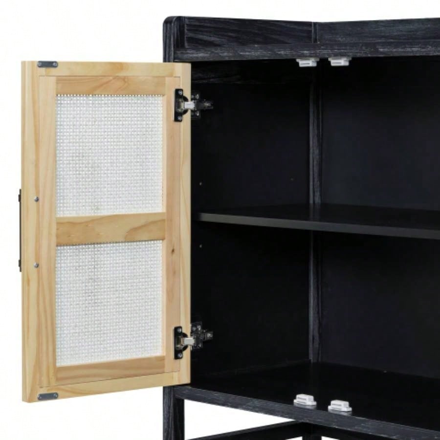 TREXM Sideboard Rustic Buffet Cabinet, sideboard cabinet with Decorative Rattan Doors, Buffet Cabinet with Storage Entryway Dining Room Kitchen Living Room, Black+Natural