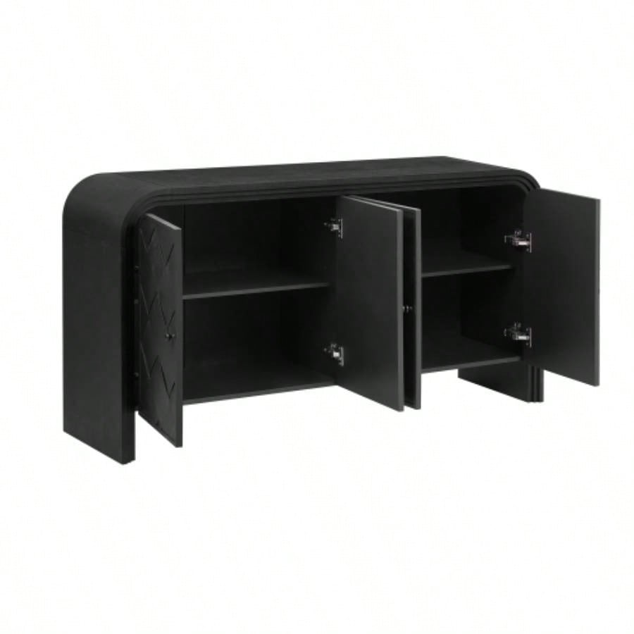 UStyle Luxury Multi - Functional MDF Sideboard - woven Wood Slat Doors, Tiered Stepped Design Premium Solid Wood Veneer Hallways, Living Rooms, Studies, and Corridors